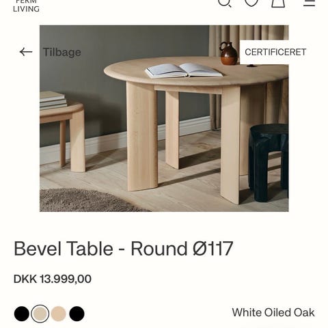 Ferm Living spisebord (+ 3 tre Herman stole)