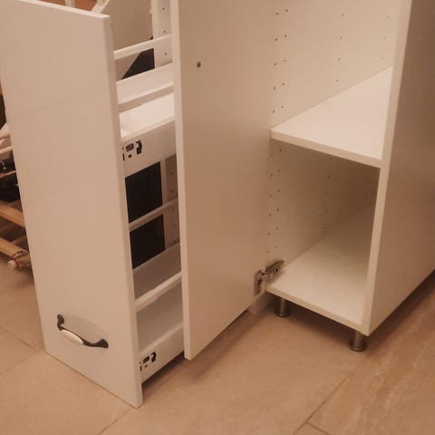 Jeg har dog ikke fået sat håndtag i skuffer/skabe, så det kan man selv vælge.