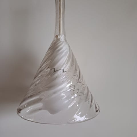 Loftslampe/spisebordlampe med glasskærm. Glasset er intakt og der er flere meter stofledning.