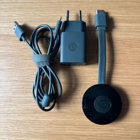 Google Chromecast (2. generation), en enhed der tilsluttes dit TV's HDMI-port for at streame indhold fra apps som Netflix, YouTube, og TV 2 Play via Wi-Fi ved at caste fra din smartphone, tablet, eller computer, styret via Google Home-appen. For at sætte den op, tilslut enheden, download Google Home-appen, log ind, og følg vejledningen til at forbinde til Wi-Fi og cast