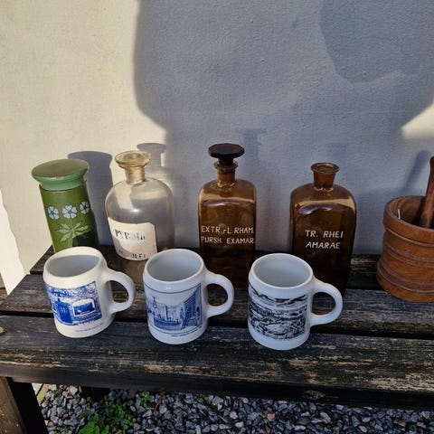 13 gamle miniature medicin- og parfumeflasker i cigarkasse med flademål 10 x 13 cm. Sælges samlet. Sender gerne men ikke via “fiks færdig”. Køber betaler porto.