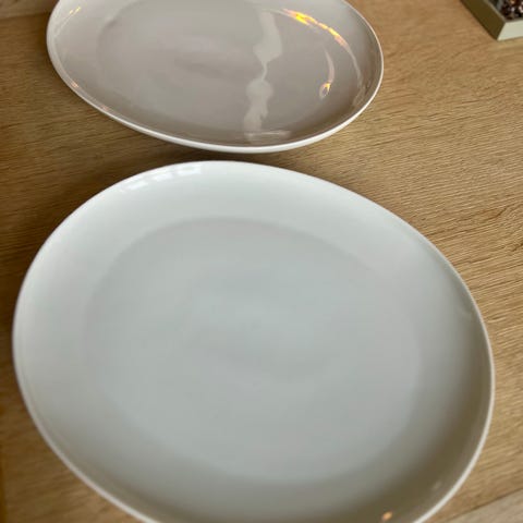 Stort rundt fad, ca. 34 cm i diameter. Det er Hvid Henning Koppel fra Bing & Grøndahl.