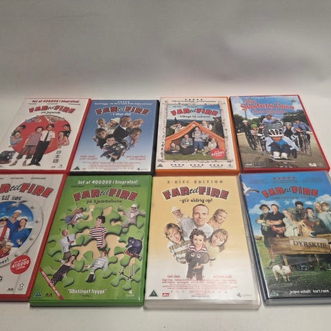 Far til fire DVD-samling med flere film i serien. Indeholder forskellige film i Far til fire-serien, som er familiekomedier rettet mod børn og voksne.