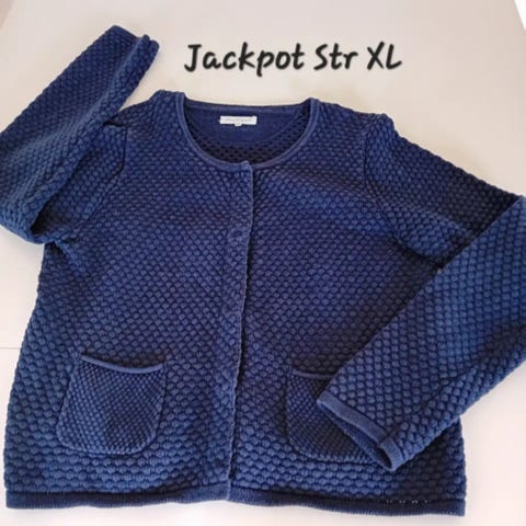 Bluse str S og nederdel str M ( men mere som størrelse S ) sæt, mørkeblå med hvide striber. 100 % bomuld. Mærket Jackpot. I pæn stand . Se evt mine andre