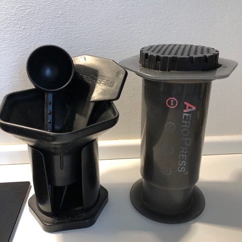 Med AeroPress kan du hurtigt og nemt brygge en kop kaffe. Alt tilbehør følger med og du er derved hurtigt i gang. Brugt meget få gange og fremstår derfor som ny.
