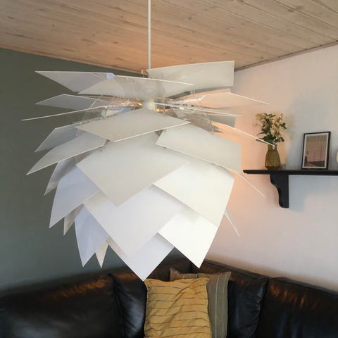 Lækker "ananas" lampe. Mørkeblå. Giver et rigtig rart lys, da lyset fra pæren fordeles