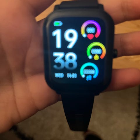 Triacle Legacy lII Smartwatch med blå silikonerem. Uret har flere urskiver med funktioner som skridttæller, kalorieberegning, pulsmonitor og dato. Designet til både daglig brug og træning med digitalt display og aktivitetsmåling.