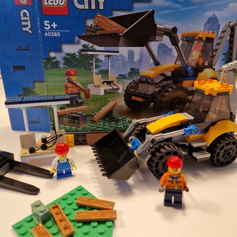 LEGO City byggeæt med gravemaskine, lastbil og tilbehør. Sættet indeholder flere byggeinstruktioner og dele til at samle forskellige køretøjer og maskiner inden for temaet byliv.