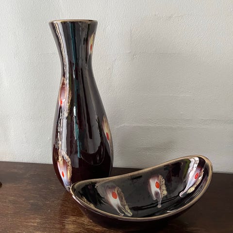 To små West Germany , skåle , en i mat glasur den anden i højglans, ( PRISEN ER FOR DEM BEGGE ) , Søgeord! Samler, fajance , keramik, indbo, indretning, dekoration, Deco, pynt, SENDER KUN MED DAO ELLER AFHENTNING.