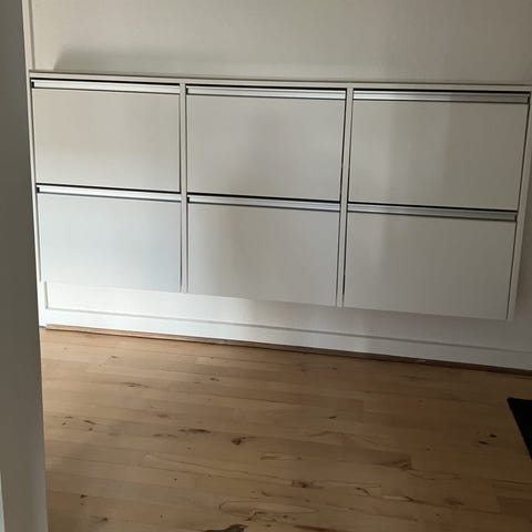 Hvidt Bro skoskab fra Ilva med tre rum til opbevaring af sko. Skabet har en enkel og funktionel konstruktion med tre vippeåbninger, der gør det nemt at organisere og få adgang til sko. Rigtig fin stand. Kan evt. leveres mod mindre merpris.