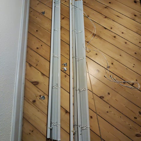 Ene hængsel på ene persienne er en smule bøjet efter nedtagning (stram skrue) men kan rettes.