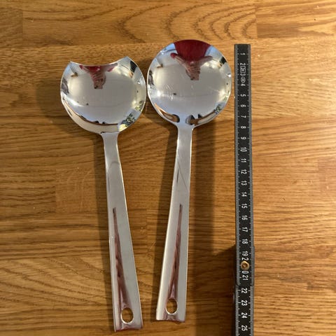 Rosendahl serveringssæt bestående af to skeer i rustfrit stål. Sættet er egnet til servering af mad og har et enkelt og funktionelt design.