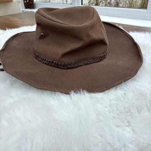 Gammel hat, været dyr. Slidt, og ringen der sidder oven på hatten er løs(søgningerne er gået op)