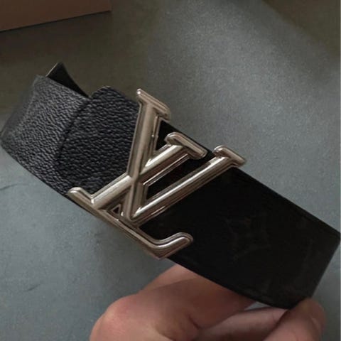 Louis Vuitton herrebælte i sort læder med metalspænde. Bæltet er designet til mænd og har et klassisk look med justerbare huller til tilpasning af størrelsen. Str 95