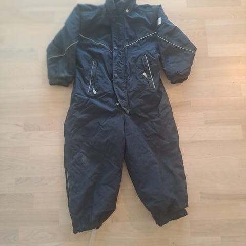 Ny Reima flyverdragt med dobbelt lynlås, brystlomme, aftagelig hætte,remme til støvler. Farven er mørklilla. Fra dyre og røgfrit hjem