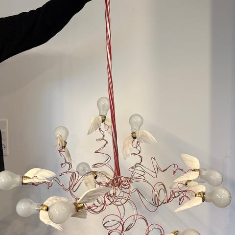 Birdie er en loftslampe designet i 2002 af det tyske mærke Ingo Maurer. Birdie er lavet af metal, har en lysventilator og tolv pærer. Når Birdie-lamperne fremstilles, formes metalrammen på hver enkelt lampe i hånden, hvilket er et avanceret håndværk. Det gør hver enkelt lampe unik, da der ikke er to lamper, der er helt ens. Ingo Maurer har skabt noget helt særligt med Birdie-kollektionen, hvor teknikken til at skjule lampeskærme, som du normalt bruger, er blevet fuldstændig redesignet af Ingo Maurer. Den bevarer lampens enkelhed - pæren og kablerne bliver det eneste fokus.