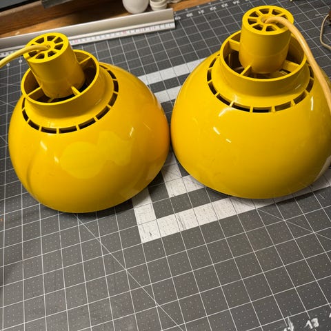 Sælger disse to loftlamper som er blevet brugt til belysning over sminkebordet.