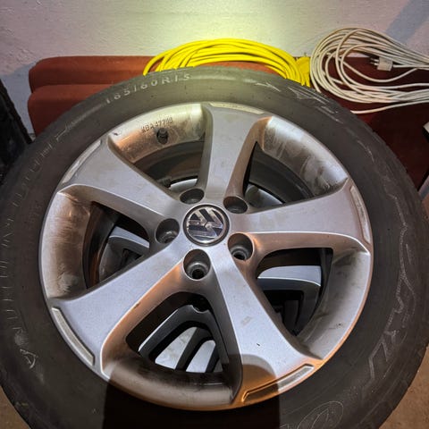 VW Golf fælge med næsten nye sommerhjul på