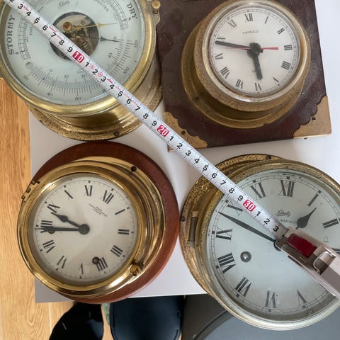 Skibsur og barometer i messing
