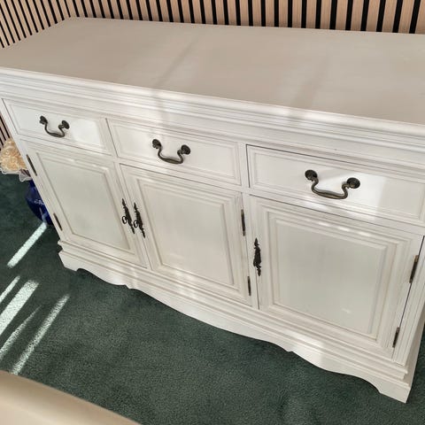 Hvidt skænk med skuffer og skabe