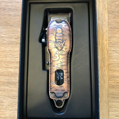 Kraftig ældre MarCant pro klipper/ trimmer med 4 afstands kamme på 3, 6, 9 og 12 mm. Med vejledning. Uden saks og olie. Brugt med stadig Fin.