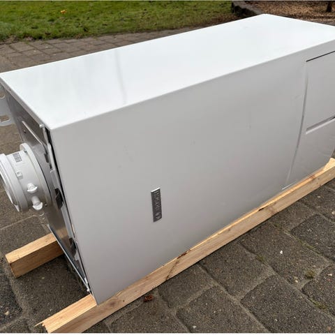 Bosch varmepumpe i hvid farve. Anvendes til opvarmning og energieffektiv regulering af indeklima.