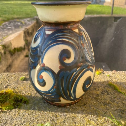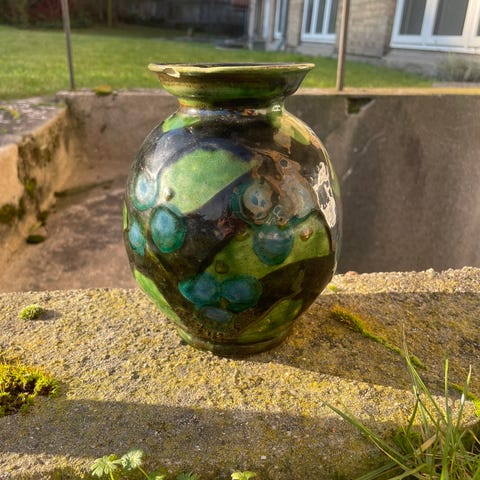 Andre samleobjekter. Art nouveau. Anden kunst. Art Deco. Bolig. Brugskunst. Dansk design. Danish design. Danishdesign. Dansk kunst. Dekorativ. Dekoration. Dekorative. Dekorativt. Decoration. Håndværk. Indretning. Kunst. Modern furniture. Samling. Samleobjekt. Æstetik. Retro. Gammel. Vintage. Antik. Samlerobjekt. Sort. Mørkegrøn. Stentøjsvase. Vase. Beholder. Keramisk vase. Keramik. Nips. Pynt. Lertøj. Stentøj. Boligindretning. Diverse indretning. Antikviteter og samlerobjekter. Danish ceramics. Danishceramics. Kunsthåndværk. Loppefund. Genbrug. Recyling. Glasur. Midcenturymodern. Gulv. Vase. Interiør. Nordisk. Dansk. Herman A. Kähler. Kahler.