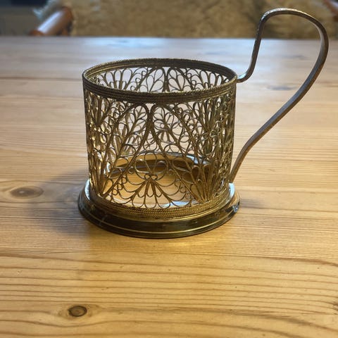 Antikke metal-kopholdere med filigran – sjældne og dekorative