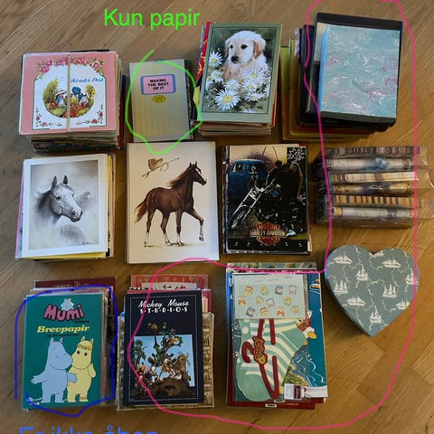 7 mapper til brevpapir 5 stykker brevpapir og kuverter.
