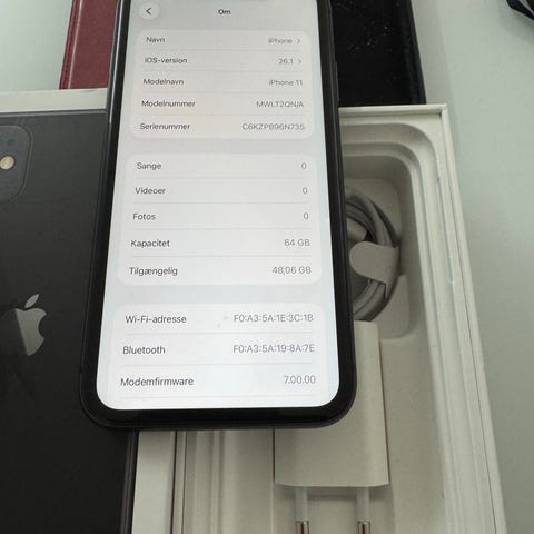 Apple iPhone 11 smartphone med 128 GB lagerplads. Enheden har en sort farve og en skærm med kant-til-kant design. Modellen understøtter flere kameraer og har en robust konstruktion. Velegnet til almindelig brug som kommunikation, internetadgang og medieafspilning.