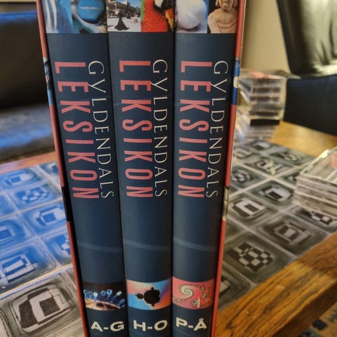 10 bind Gyldendals Leksikon.