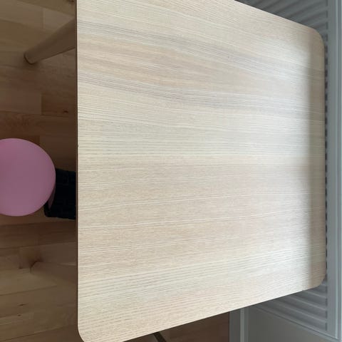 Det fik desværre et slag under transporten hjem, da vi købte det (se evt. billede), og der er også almindelige brugsspor – men det fungerer stadig fint og er stabilt.