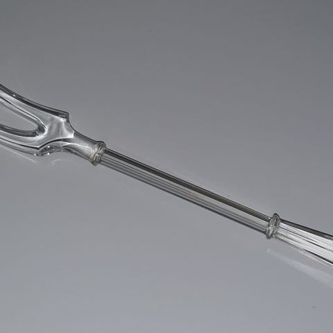Sjælden stor gammel gaffel i klart og lyserødt glas jvf. fotos.