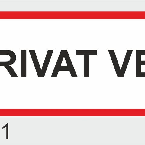 Skilte i 2 mm aluminium. Hvid bund med rød kant og sorte tekster, enk. sidet.