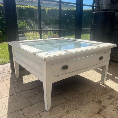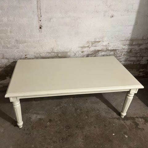Smukt hvidt sofabord i romantisk/fransk stil med fine udskæringer. Solidt og stabilt.