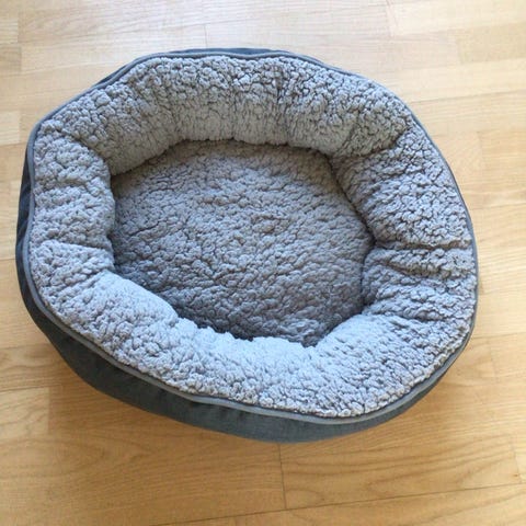 Lettere brugt, rund, flot og stabil rebflettet hundekurv inkl. vendbar pude for forskellig farve. Pudebetræk er vaskbart ved 30 ° C.