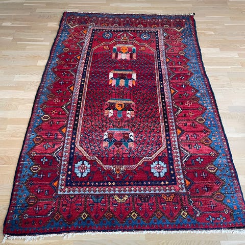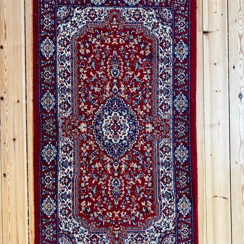 Orientalsk tæppe med målene 166x90 cm. Tæppet har et klassisk mønster med farver i nuancer af rød, beige og brun. Velegnet til brug som gulvbelægning i forskellige rum. Kan sendes/ Evt. Leveres