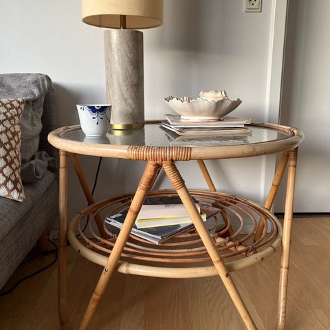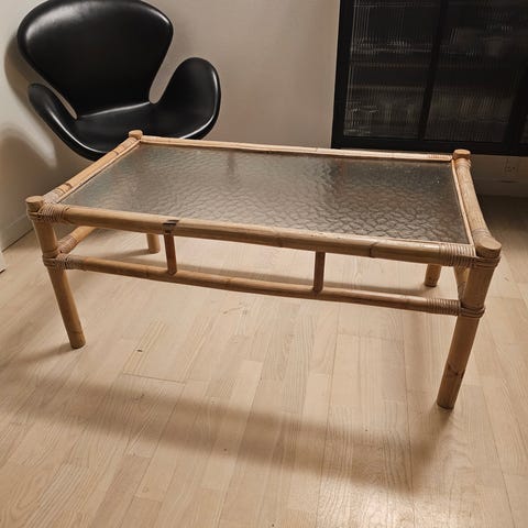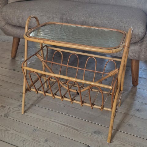 Bambus sofabord med glasplade og magasinhylde - Flot vintage bord bambusbord