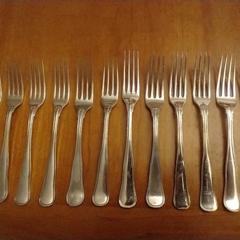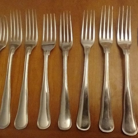 8 stk. Dobbeltriflet Middagsgafler Sølvplet