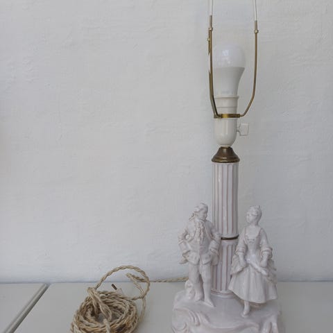 Gammel Charmerende bordlampe med figur Engel. 32 cm høj til fatning.