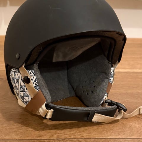 Luksus hjelm med udluftning og 2 visir, blåtonet med spejl til sol og gul, til dage med sne. Brugt under 1 uge, passer bare ikke til mit hovede.