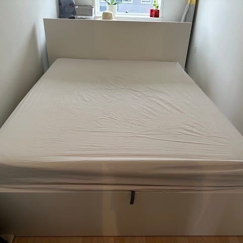 Sort IKEA Malm Seng med 4 skuffer til opbevaring.