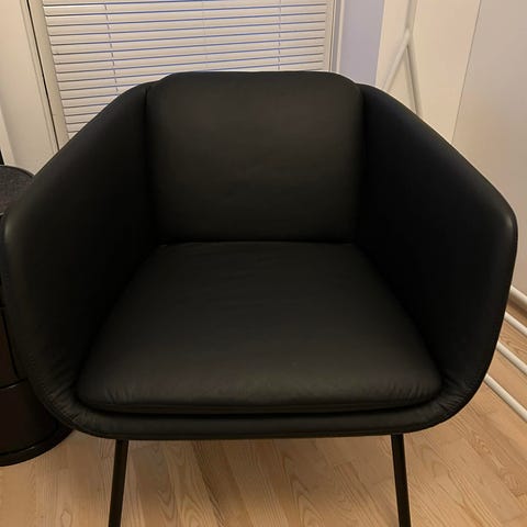 2 stk. meget velholdte Kebe Lotus lænestole i sort læder med dreje- og vippefunktion samt tilhørende fodskamler. Stolene er næsten som nye og har ingen ridser eller mærker. Sælges kun samlet.