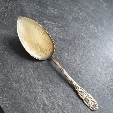 Fin rund kagespade i rustfritstål sælges pga. oprydning/flytning. Perfekt til særligt runde kager som muffins, medaljer o.l.