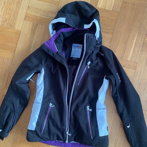 Skijakke i super kvalitet og i virkelig top stand., kun brugt i 10 dage. Vandtæt med 15.000 og åndbar med 15.000 - 4 way stretch materiale. Med aftagelig hætte, lomme til skikort, snefang, mange lommer.. Lynlåsen virker som den skal. Jakkens mål: overvidden ca. 104, talje 90cm, forneden ca.105 cm, ryglængden 66 cm, fra håndledet over skulderen til det andet håndled ca. 168cm.Har en lille plet på ryggen, som man ikke lægger mærke til. Nypris var omkring 2000 kr