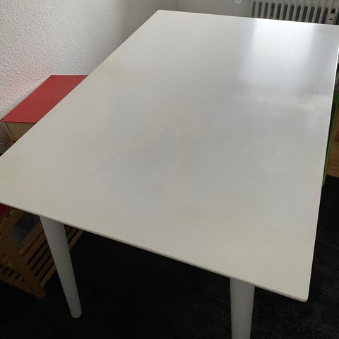 Dejligt stort bord, vi har brugt det både som spisebord og arbejdsbord for to. Jeg kender ikke mærket. Gedigen udførelse.