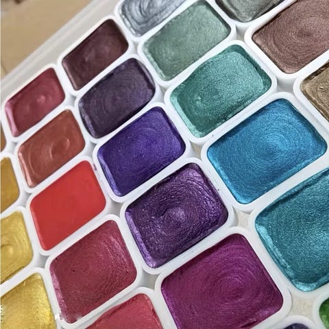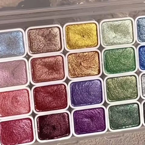 Akvarelfarver sæt med 24 forskellige farver. Farverne har en glitrende og metallisk perlemors effekt. Uåbnet pakning.
