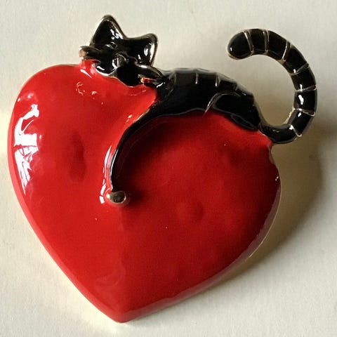 Broche med hvid kat