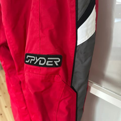 Spyder skibukser til herre i sort farve. Bukserne har justerbare seler og flere lynlåslommer. Materialet er designet til at være velegnet til skiløb og udendørs aktiviteter i koldt vejr.