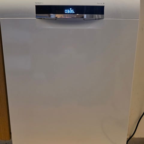 Velholdt Bosch Serie 6 opvaskemaskine (model SMU67TS05S/74). Maskinen er brugt i privat hjem og fremstår meget pæn og velholdt, både udvendigt og indvendigt.